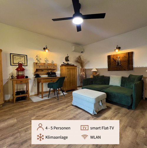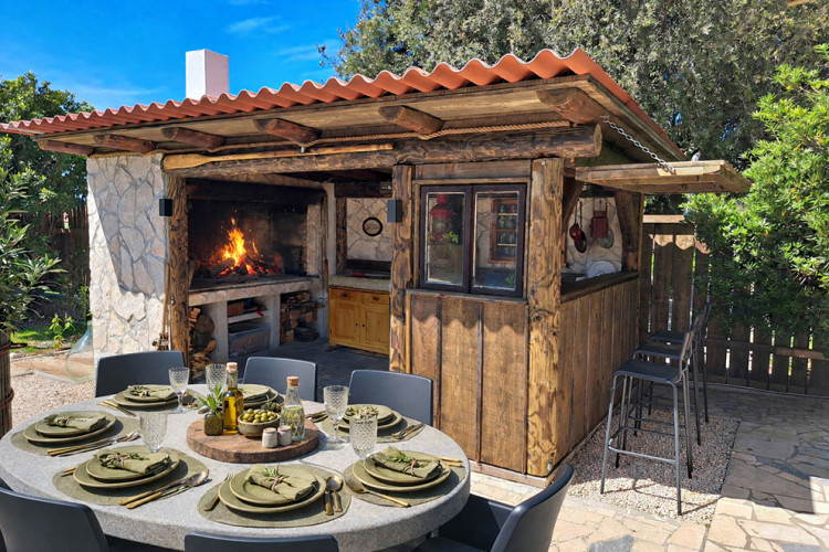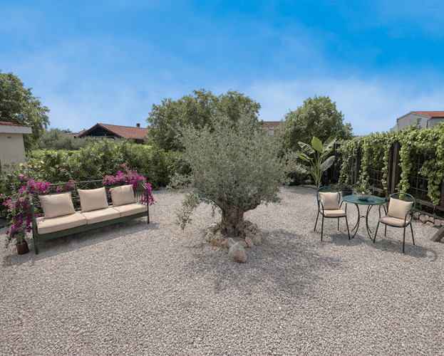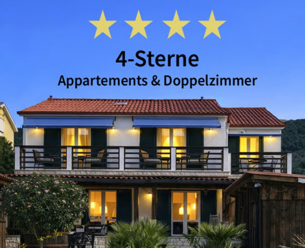 Das 4-Sterne-Appartement im Erdgeschoss ist offen, modern und zugleich herrlich gemütlich gestaltet. Hier wohnst du großzügig, entspannt und mit vielen besonderen Details, die den Aufenthalt familiär und wohnlich machen. Ein Schlafzimmer, 2 WCs, ein großer offener Wohn- und Essbereich mit freistehendem Küchenblock, die überdachte Terrasse mit Day-Bed und die Kombination aus traditionellem kroatischem Stil, natürlichem Holz und moderner Ausstattung macht das Appartement und die Outdoor-Küche im großen Garten zu einem einzigartigen Ort.